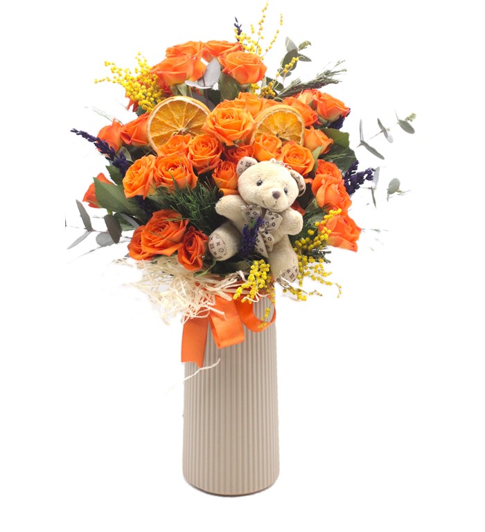 turuncu çardak gül ve ayıcık | Çiçek Vagonu