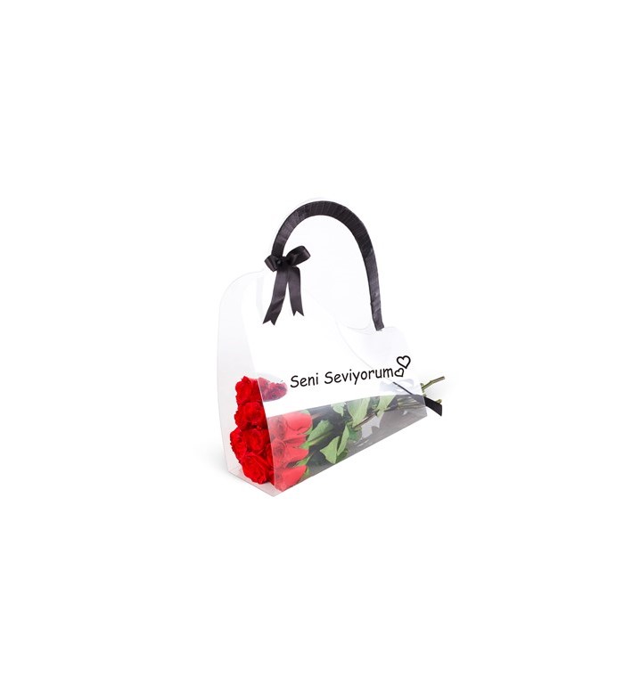 çantada kırmızı güller | Çiçek Vagonu
