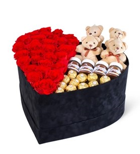 kalp kutuda kırmızı güller ve nutella | Çiçek Vagonu