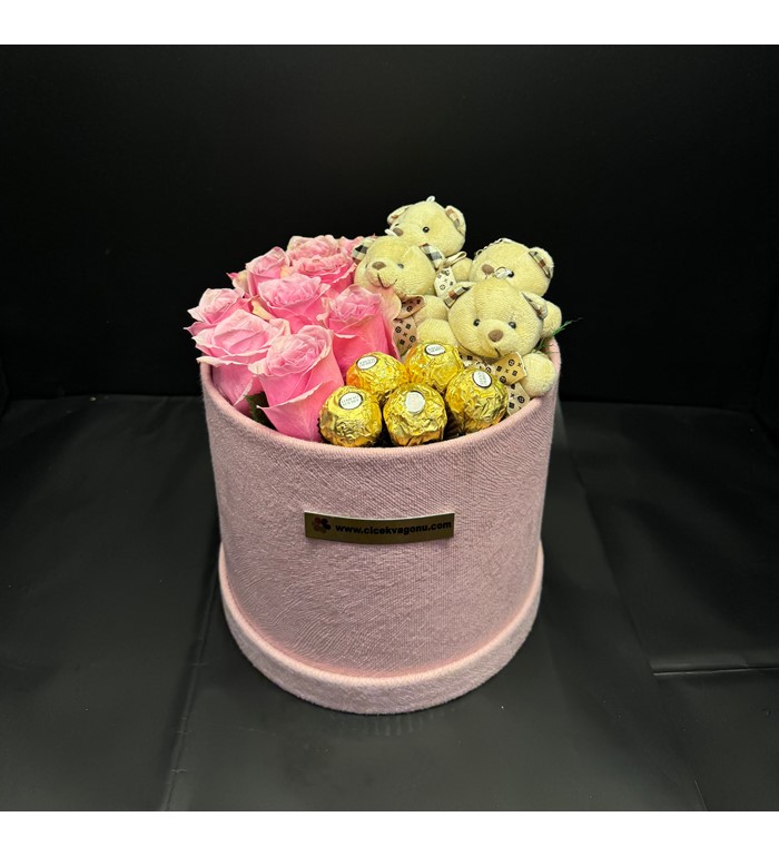 Kutuda Pembe Gül Ve Ferrero Rocher Çikolata