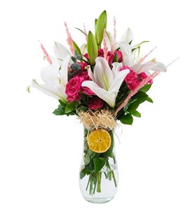 lilyum ve pembe güller | Çiçek Vagonu