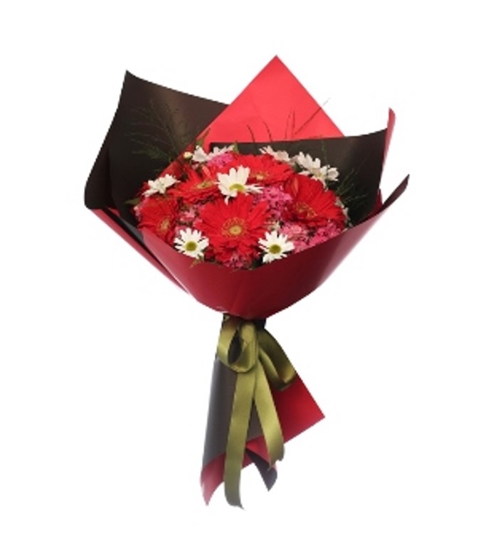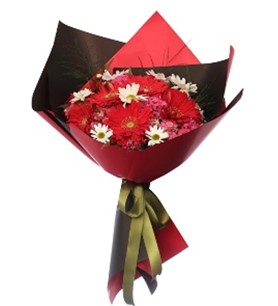kırmızı kutuda papatya ve güller
