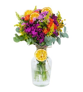 vazoda hüsnü yuf ve turuncu çardak gül | Çiçek Vagonu