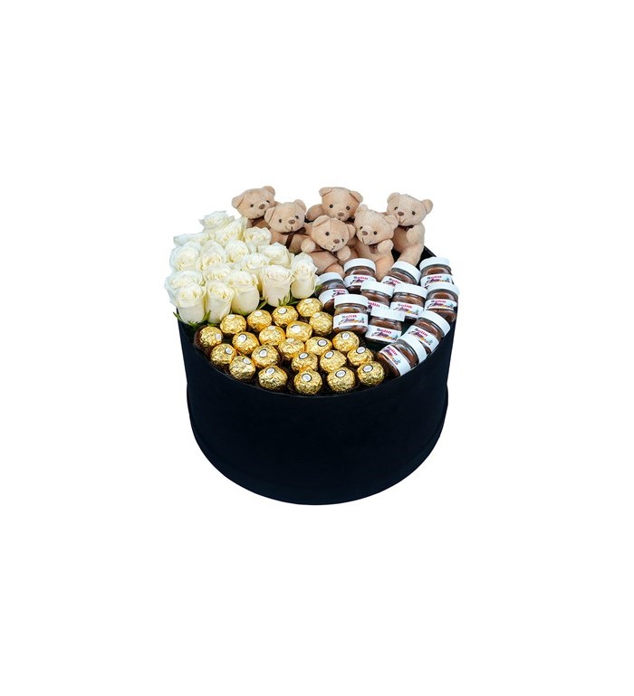xl kutuda beyaz gül ve ayıcık | Çiçek Vagonu