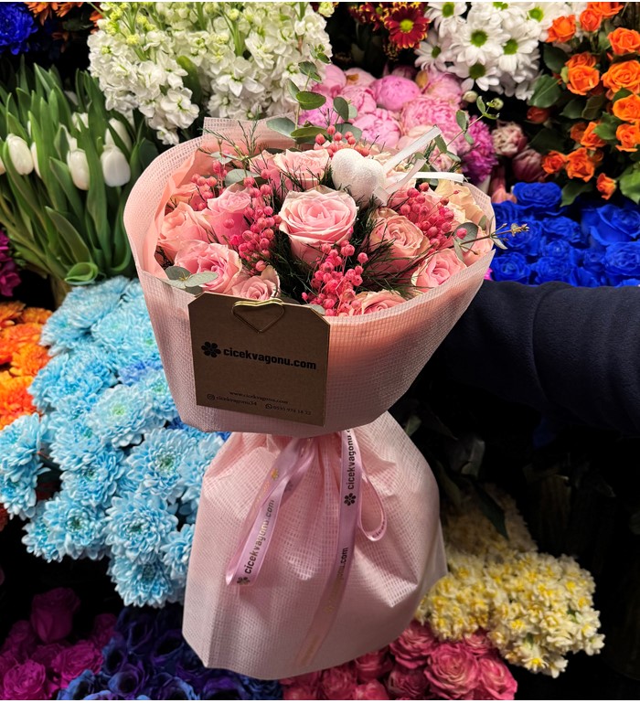 19’lu Pembe Gül Buketi Luxury | Çiçek Vagonu