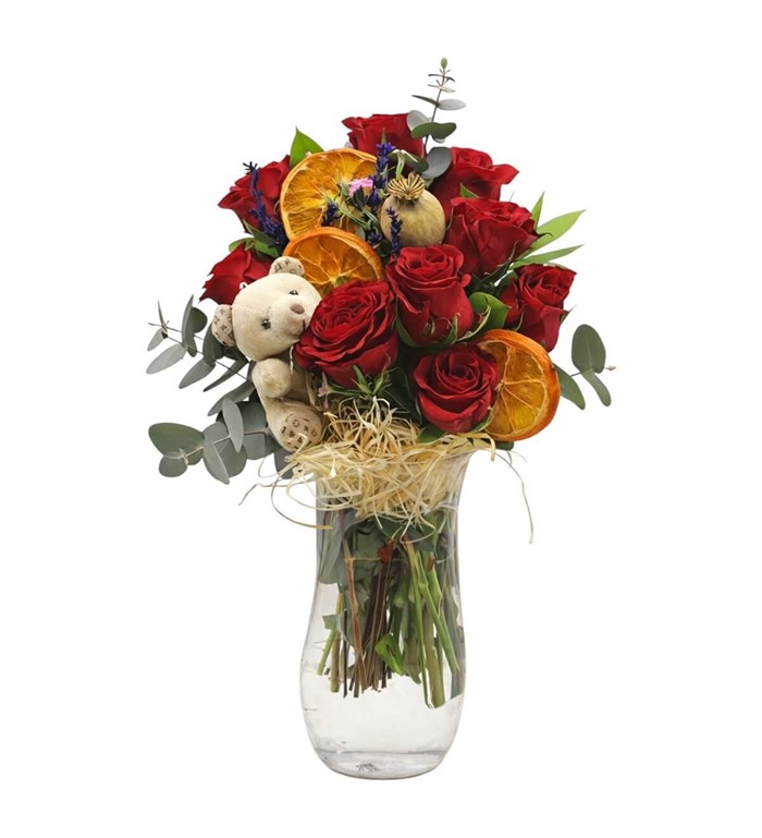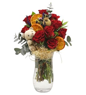 ayıcıklı kırmızı güller | Çiçek Vagonu