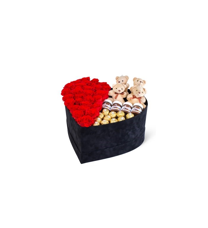 kalp kutuda kırmızı güller ve nutella | Çiçek Vagonu