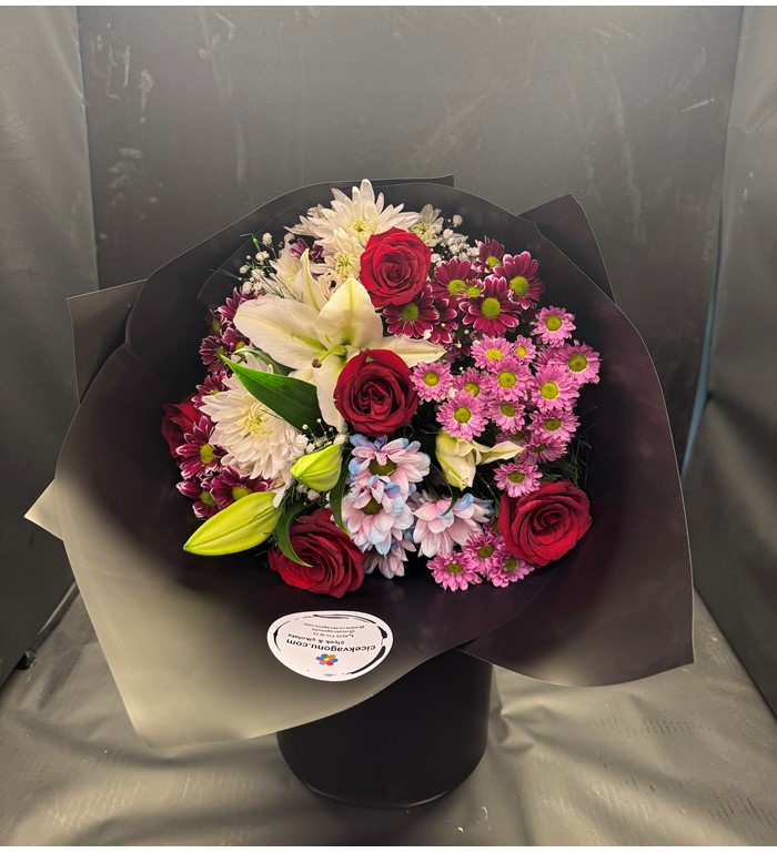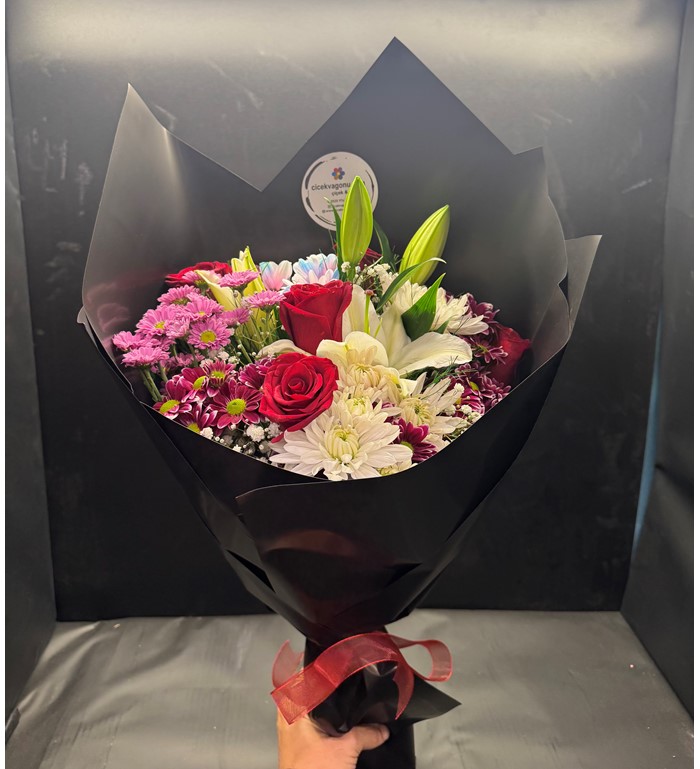 İthal lilyumlar, papatyalar ve güllerin uyumuyla hazırlanan bu karışık buket, her duyguyu en zarif haliyle ifade eder. 💐
