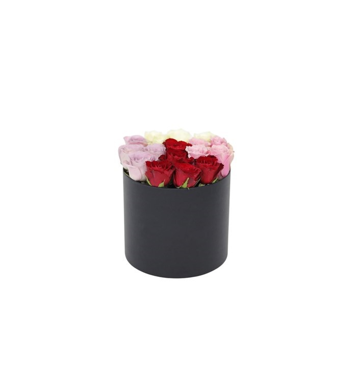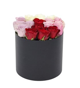 siyah silindir kutuda renkli güller | Çiçek Vagonu