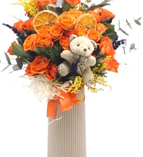 turuncu çardak gül ve ayıcık | Çiçek Vagonu