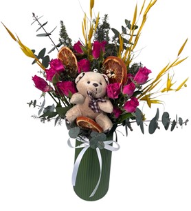 vazoda ayıcık çardak güller | Çiçek Vagonu