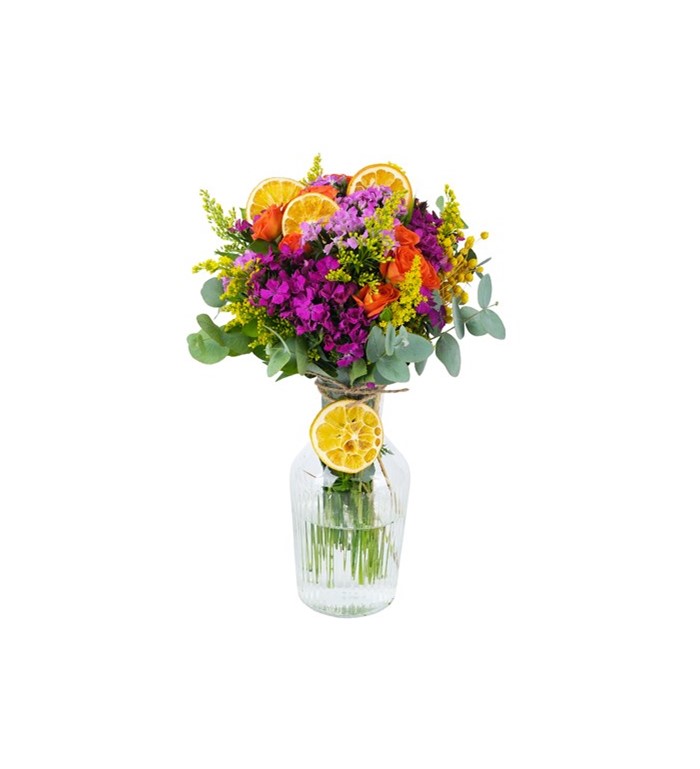 vazoda hüsnü yuf ve turuncu çardak gül | Çiçek Vagonu
