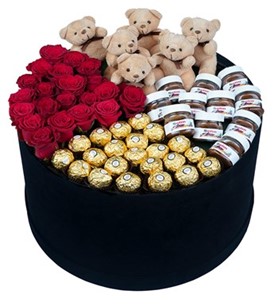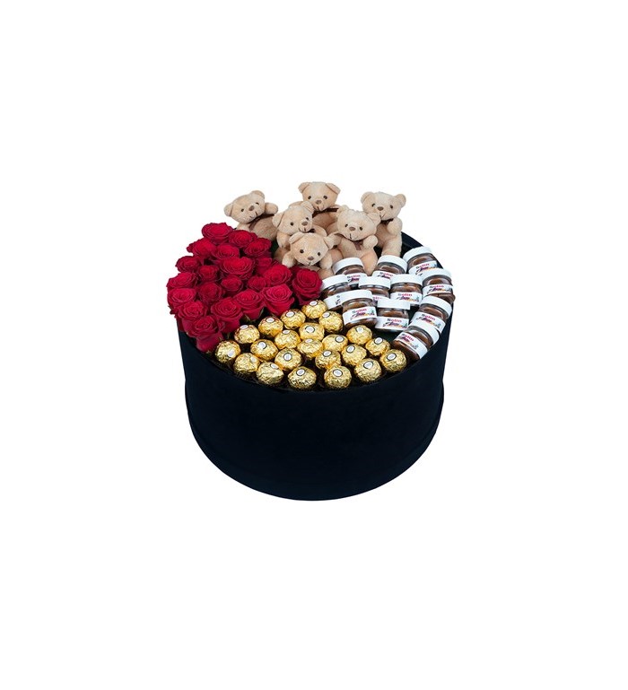 xl kutuda ayıcık ve güller | Çiçek Vagonu