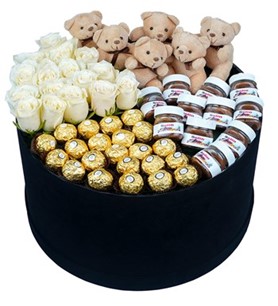 xl kutuda beyaz gül ve ayıcık | Çiçek Vagonu